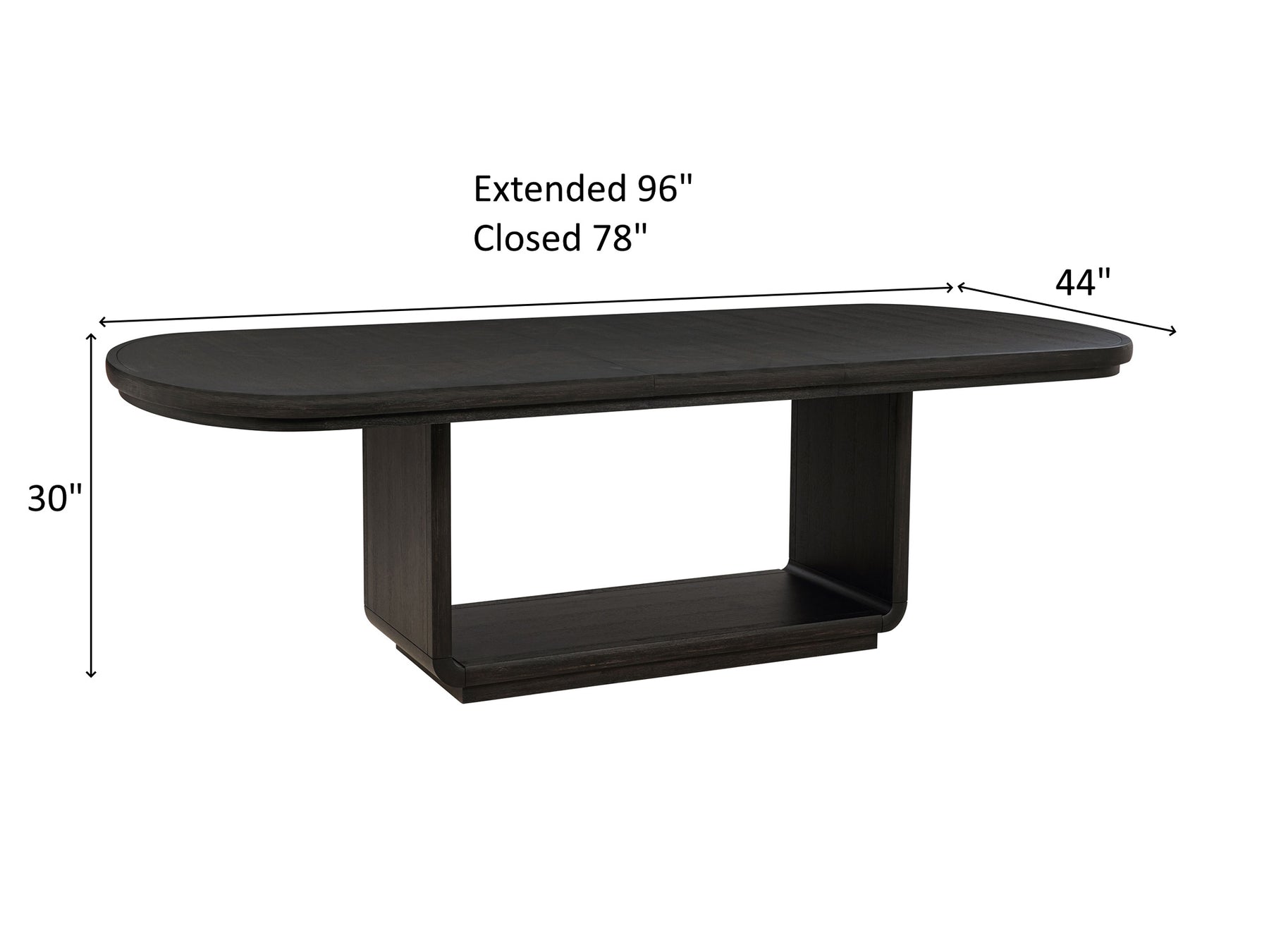 Table (Extended) Overall Dimensions 30" H x 96" W x 44" D