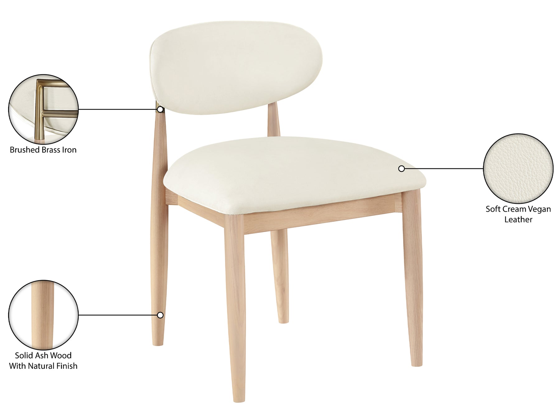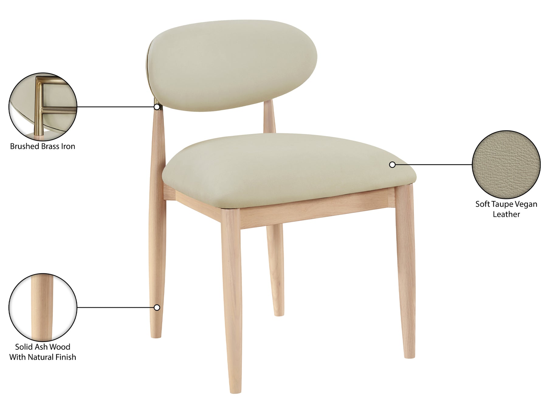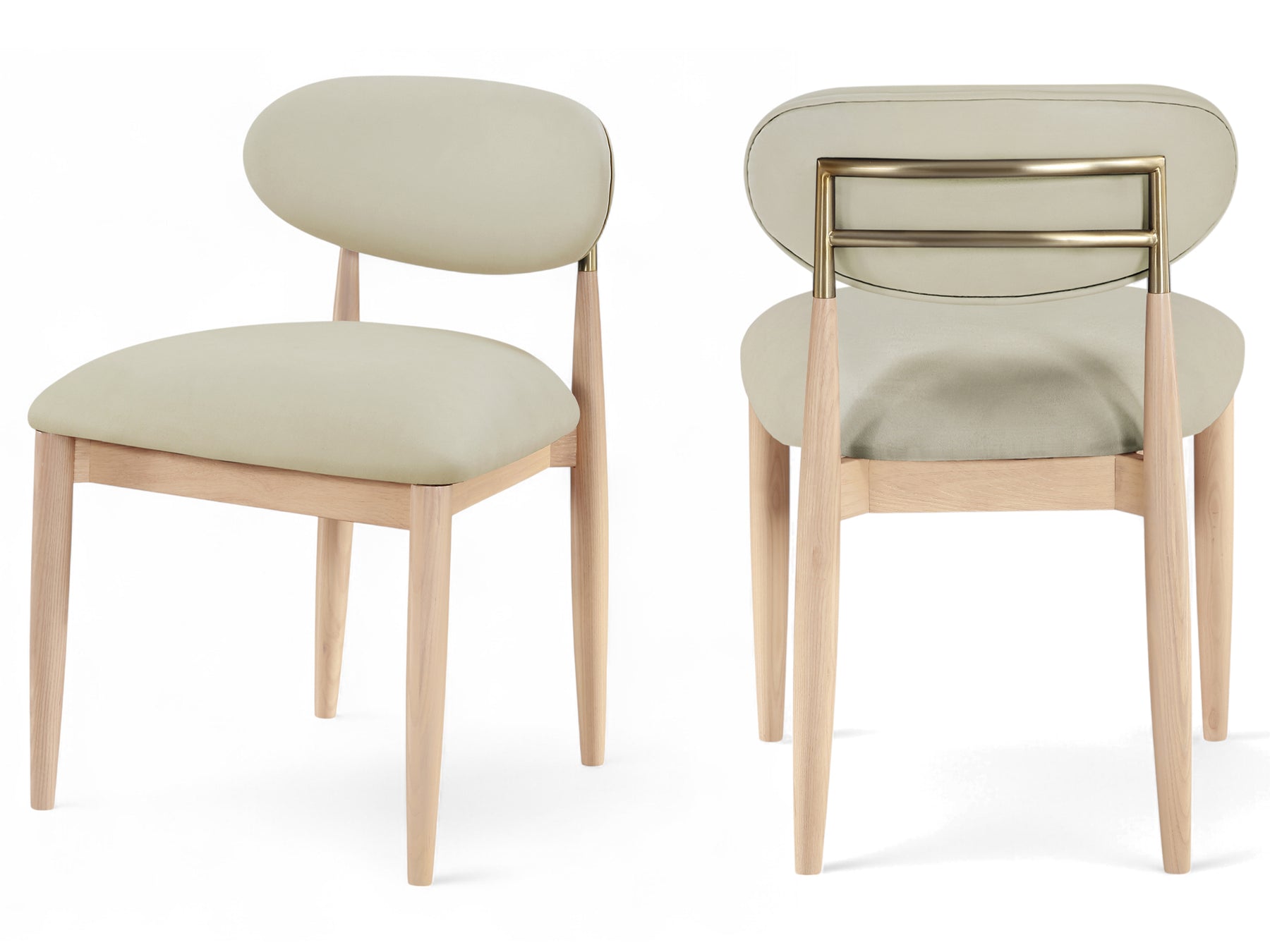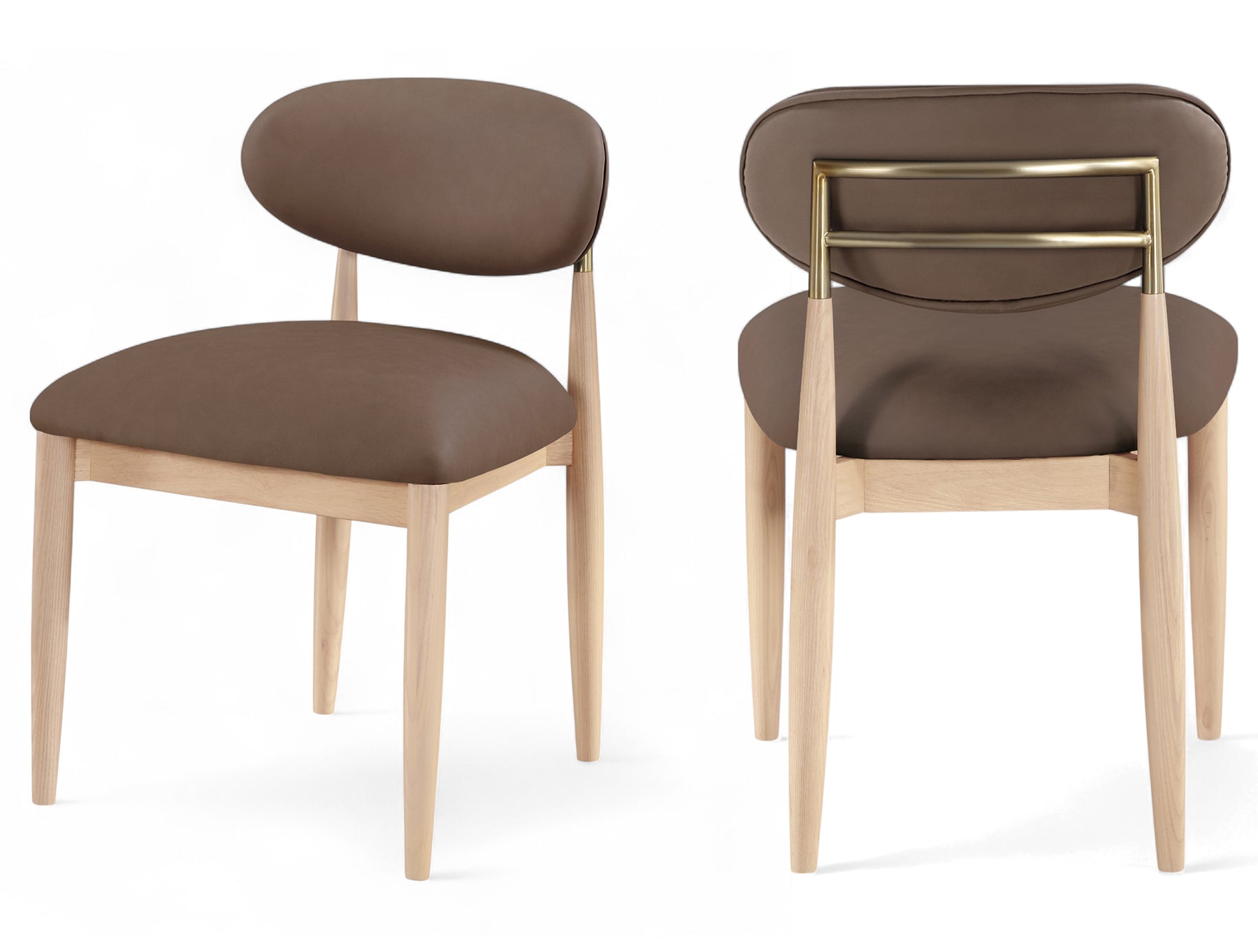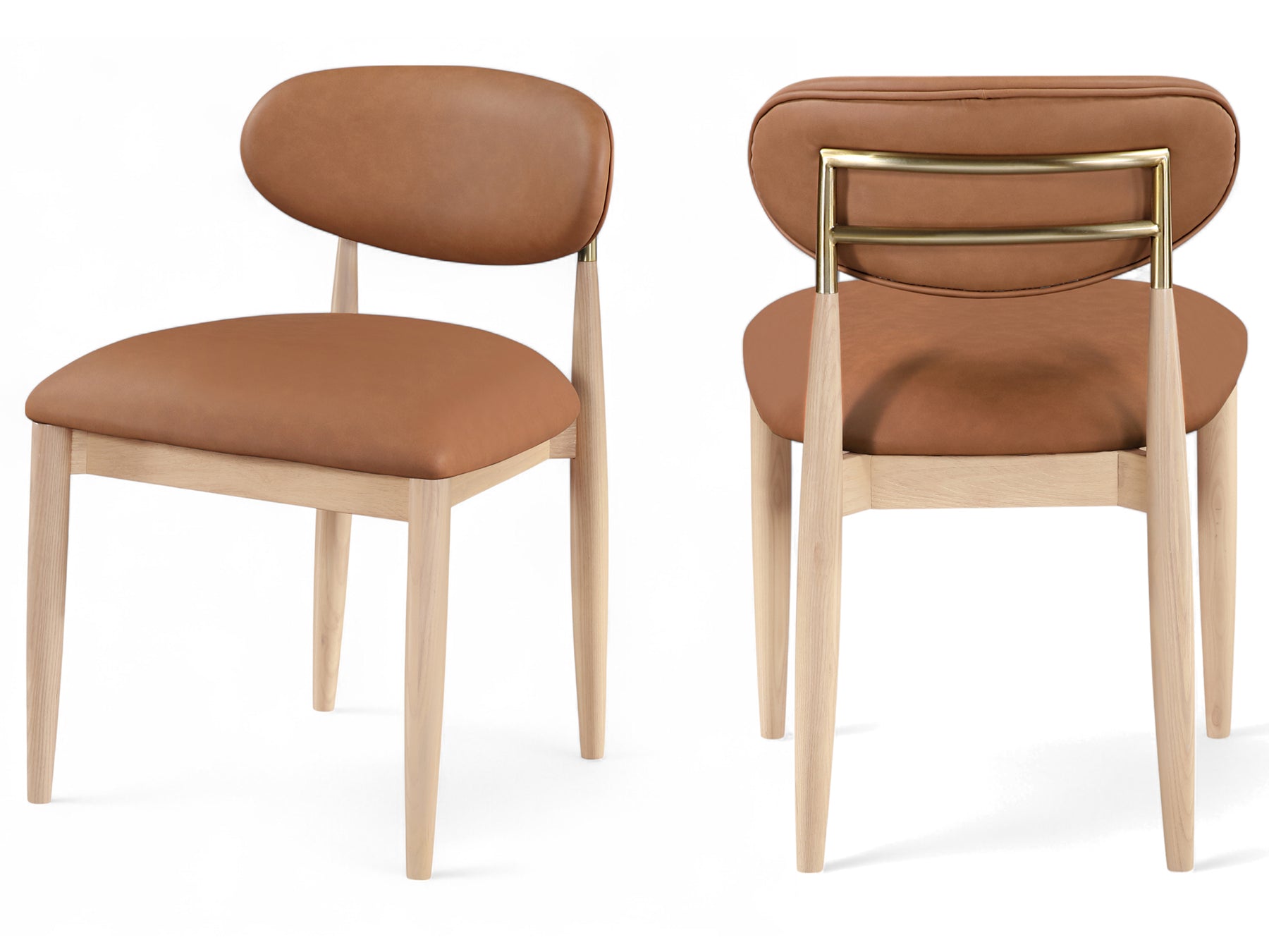 Riccio 20.3" Wide Vegan Leather Natural and Gold Frame Dining Side Chair (Set of 2)
