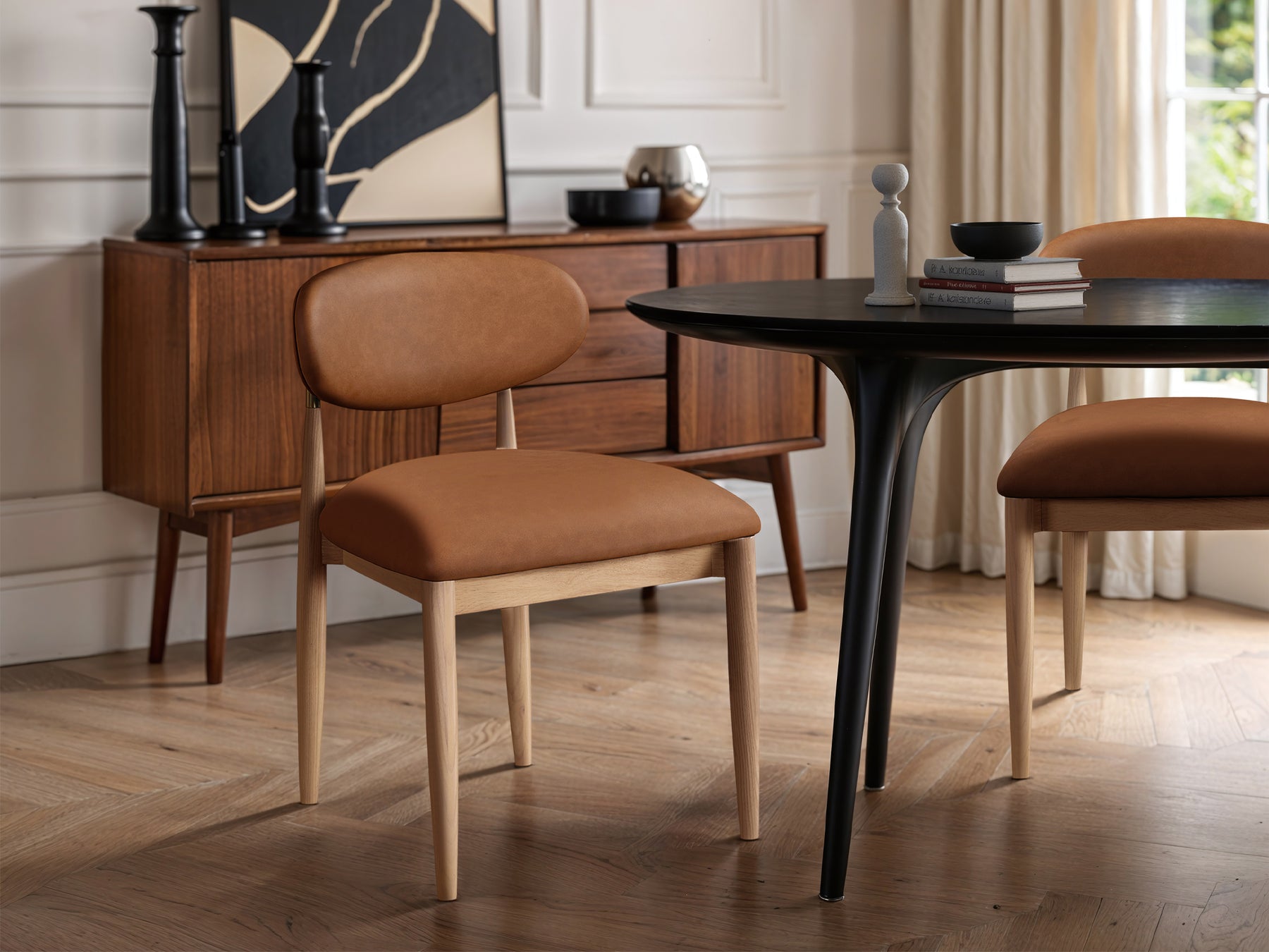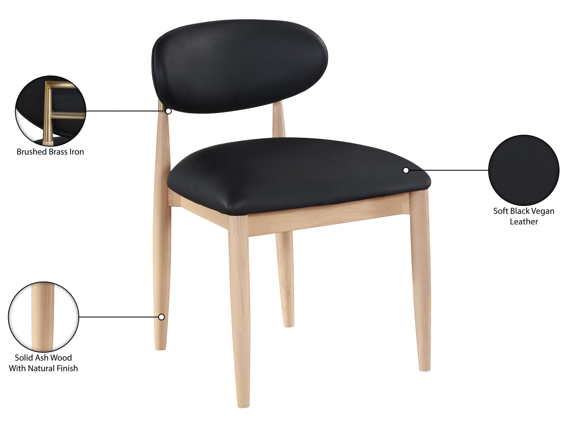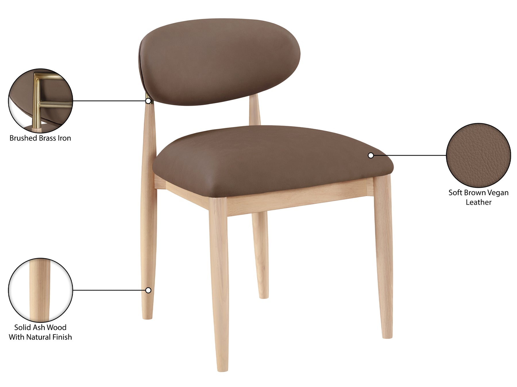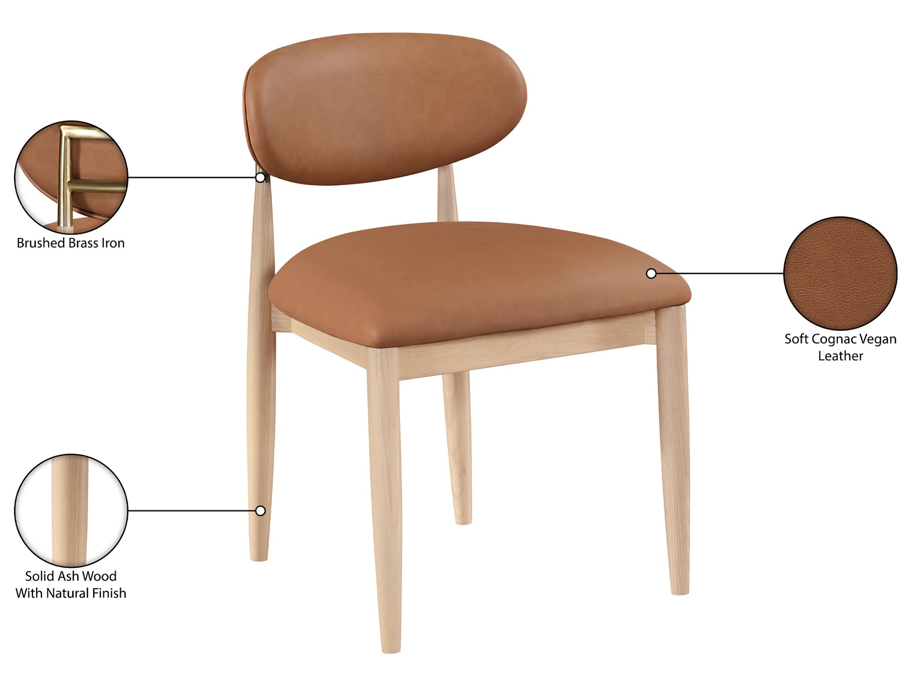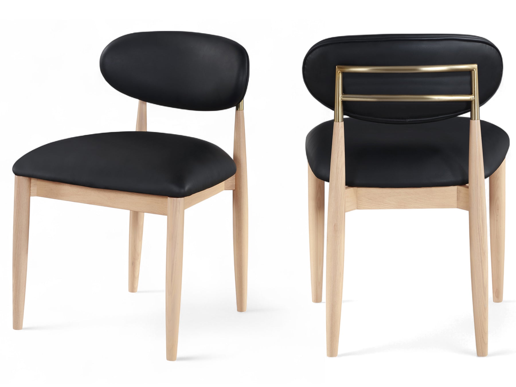 Riccio 20.3" Wide Vegan Leather Natural and Gold Frame Dining Side Chair (Set of 2)