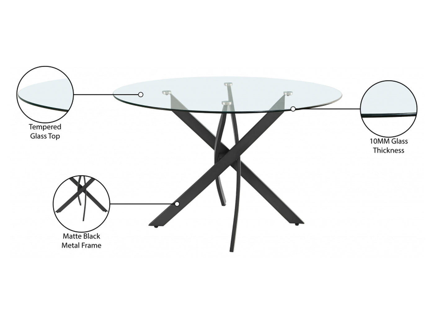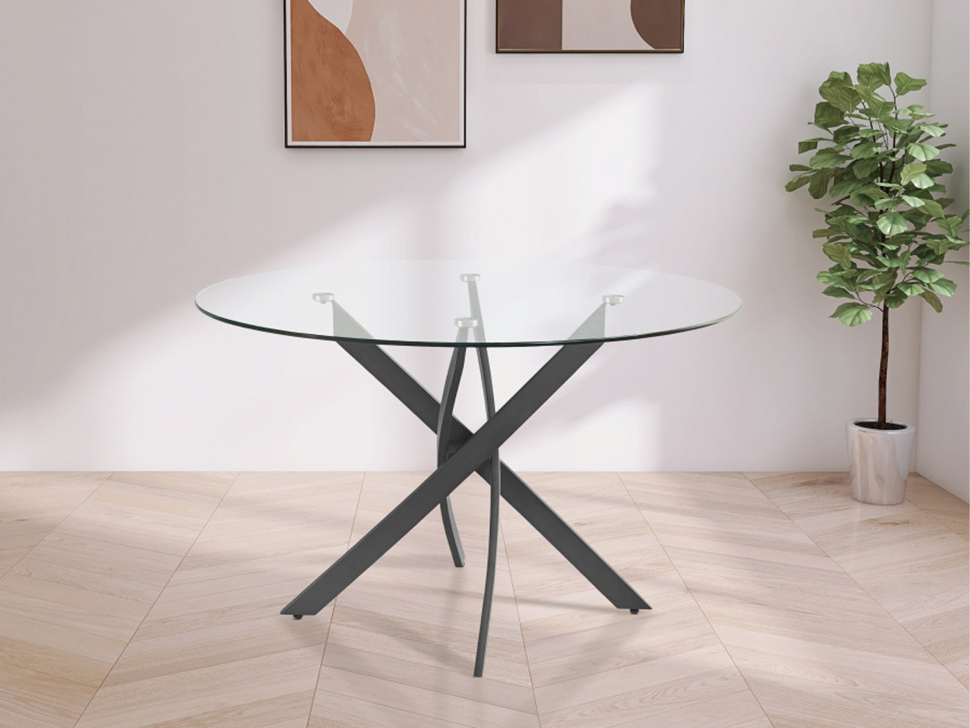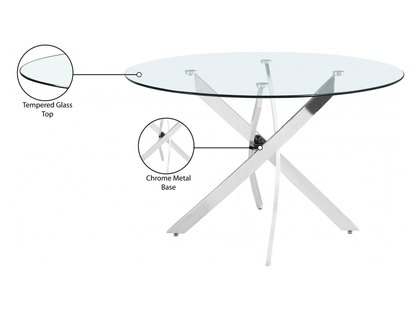 Xander 48" Wide Round Glass Top Dining Table