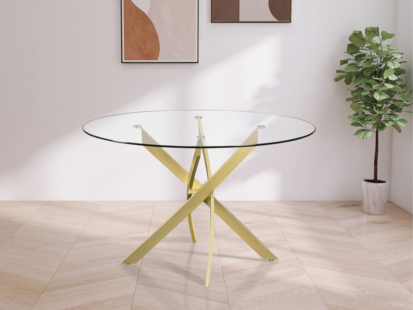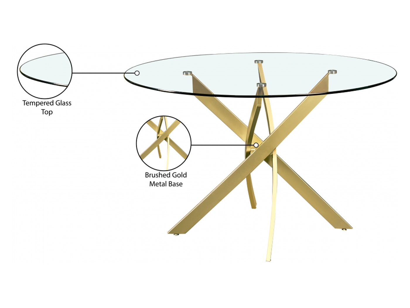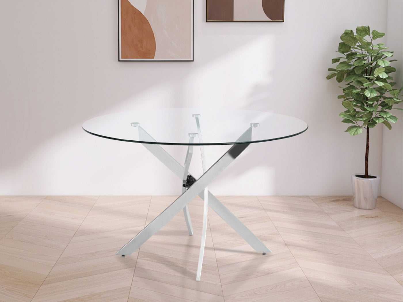 Xander 48" Wide Round Glass Top Dining Table