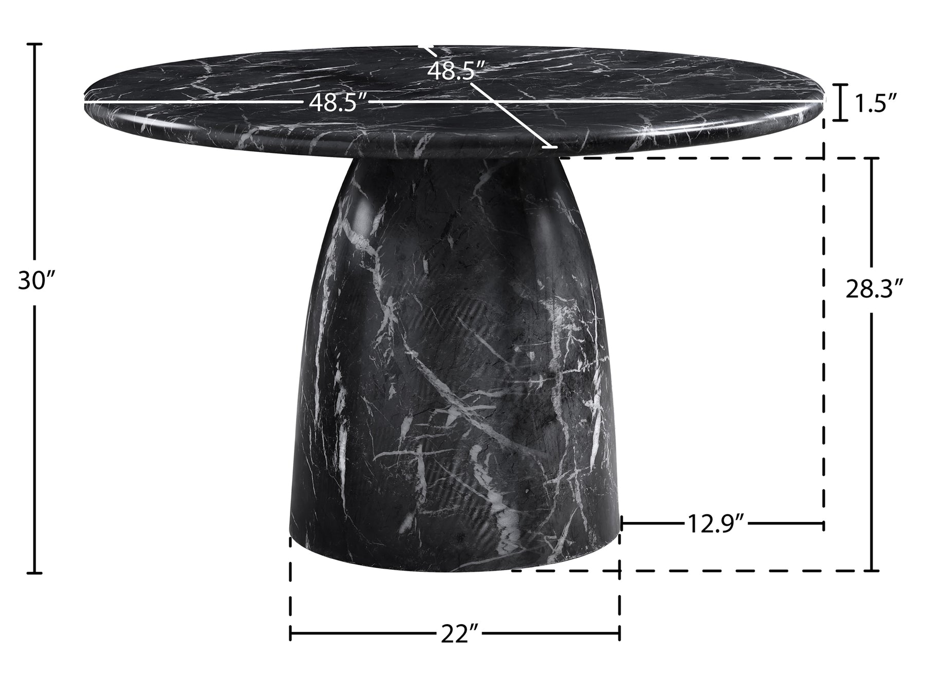 Overall Dimensions 30" H x 48.5" W x 48.5" D