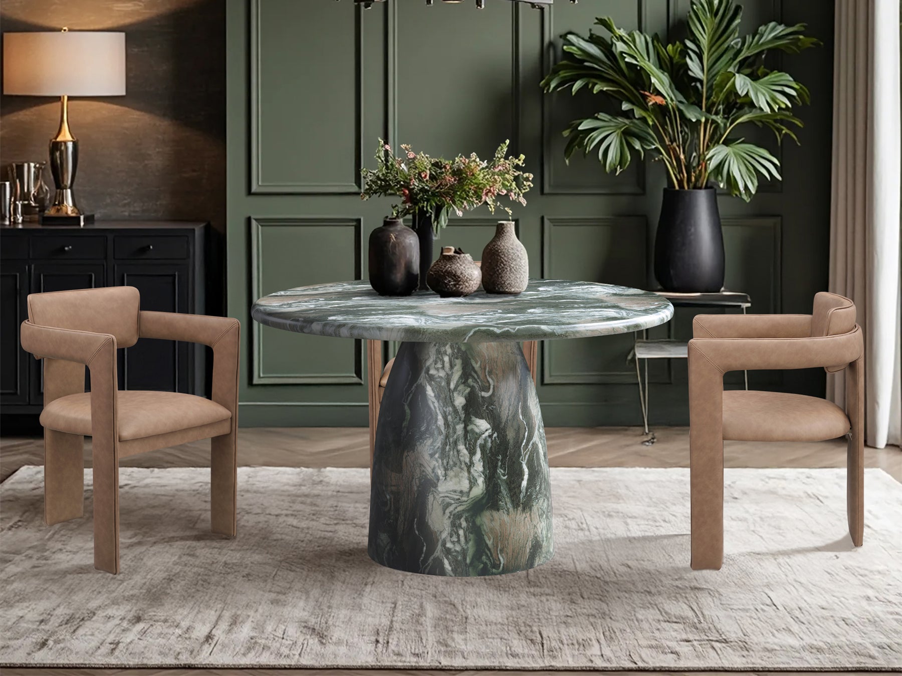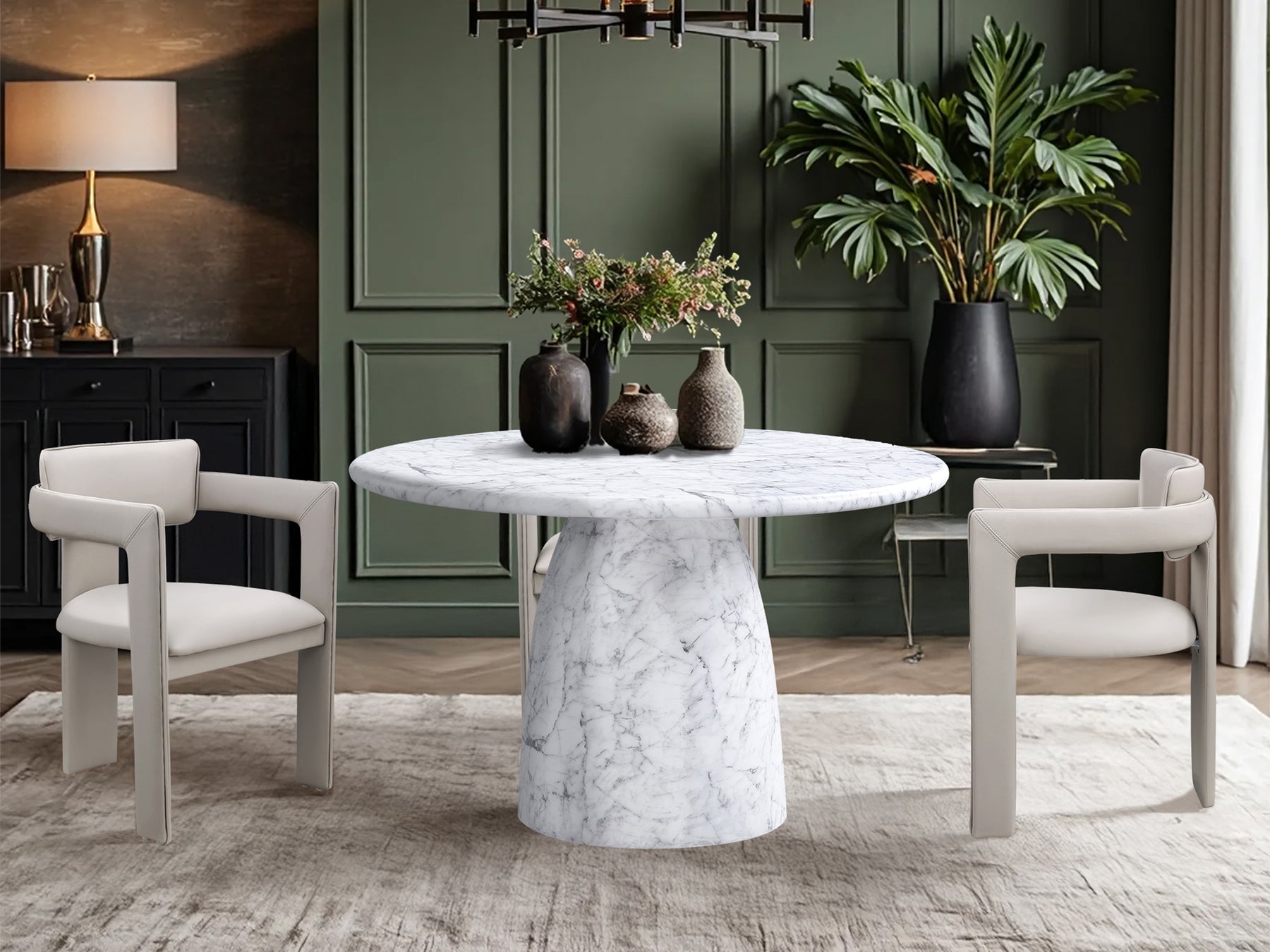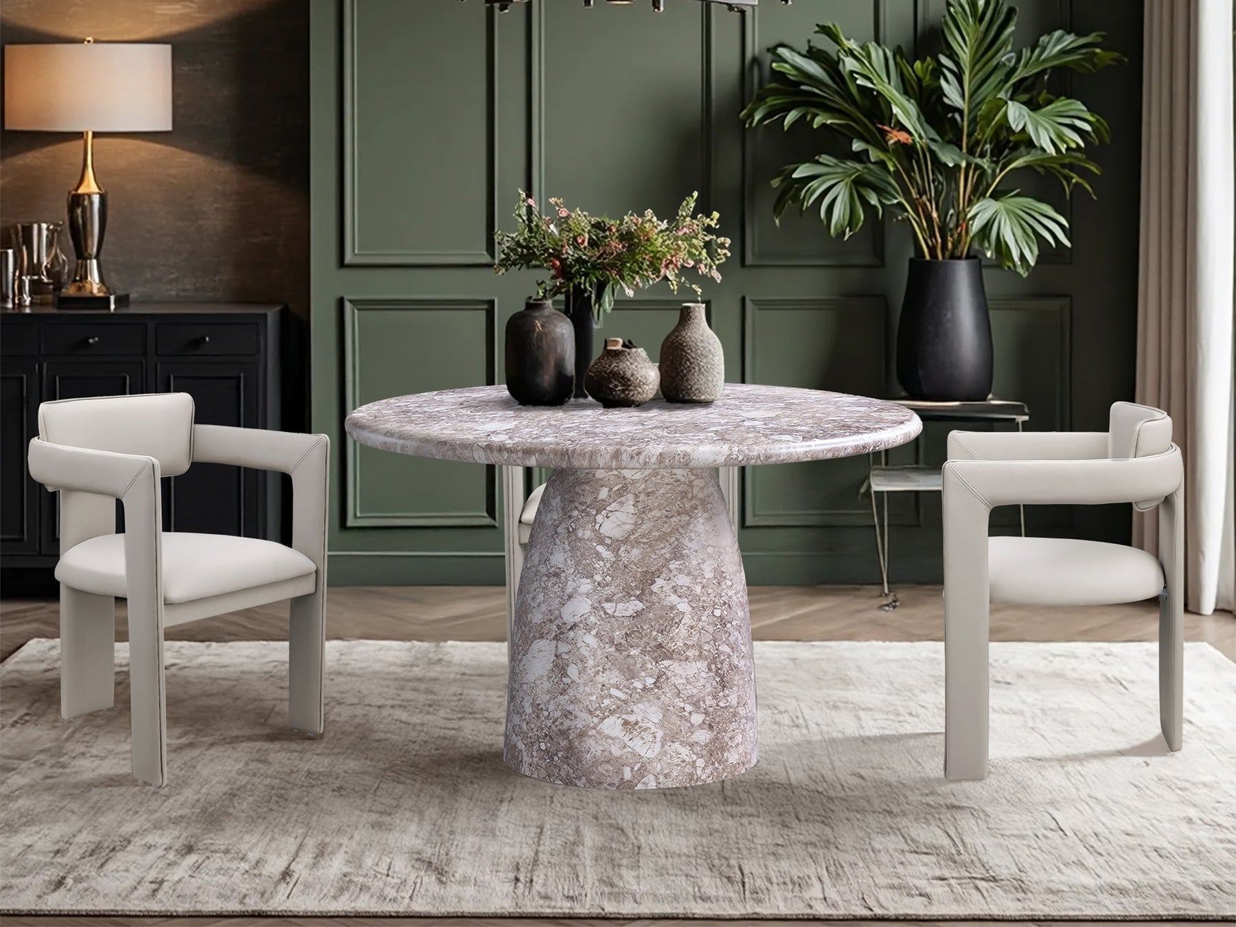 Cosenza 48.5" Wide Marble Looking Concrete Round Dining Table