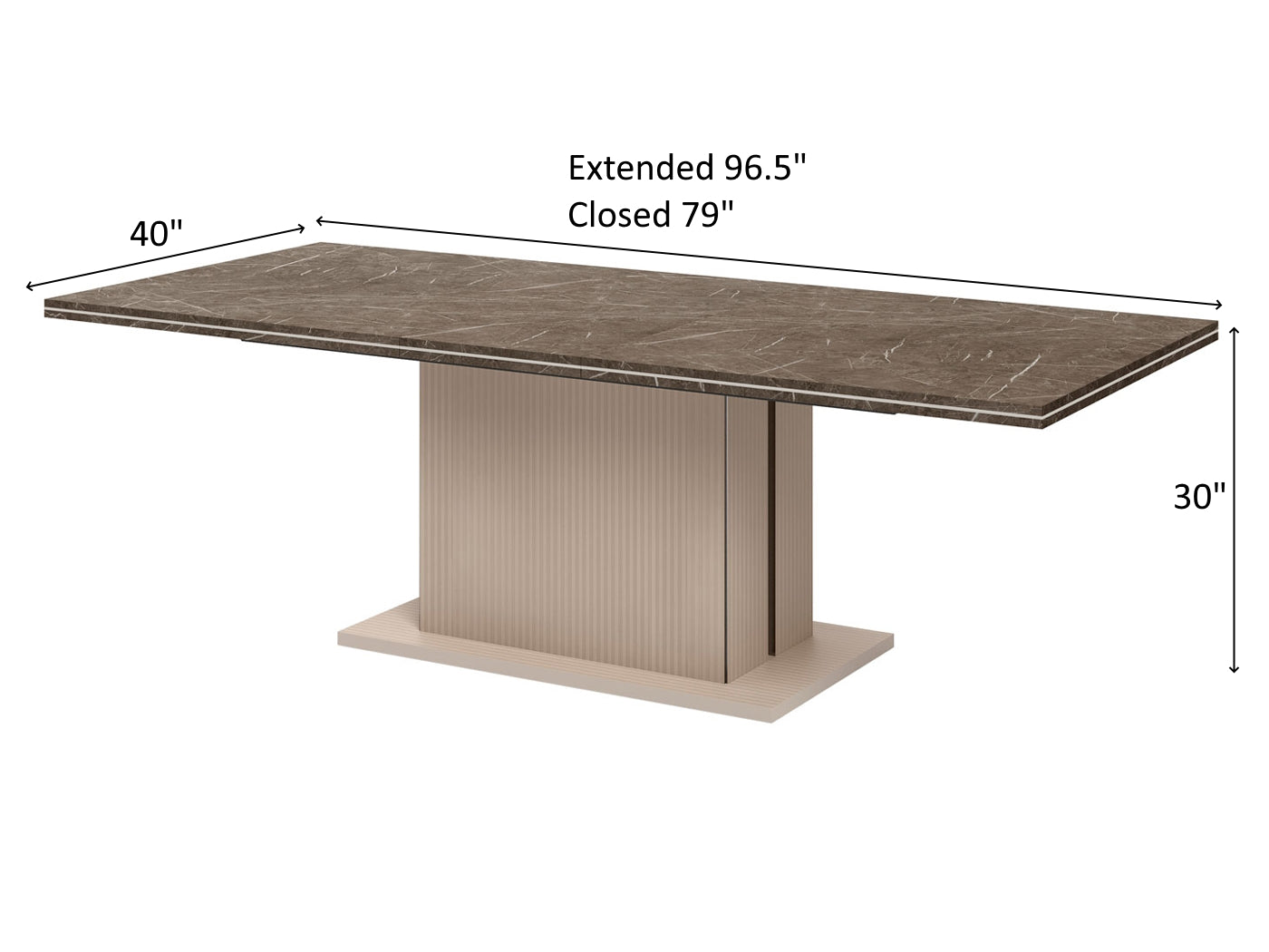 Table (Extended) Overall Dimensions 30" H x 96.5" W x 40" D