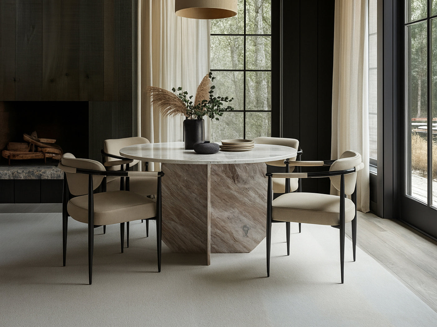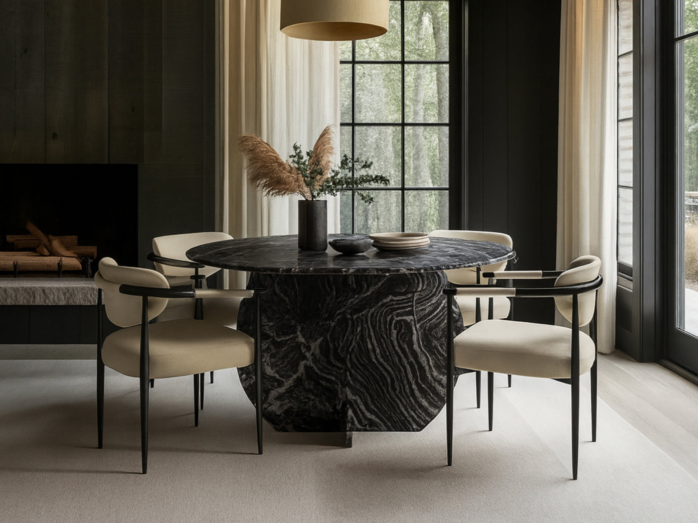 Formentera 48" Wide Handcrafted Genuine Marble Round Dining Table