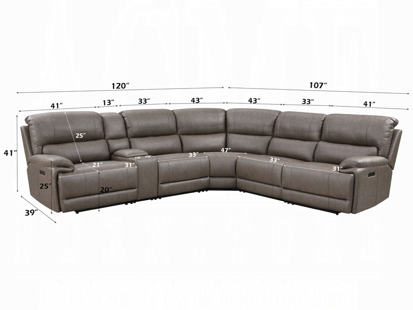 Overall Dimensions 41" H x 120" / 107" W x 39" D