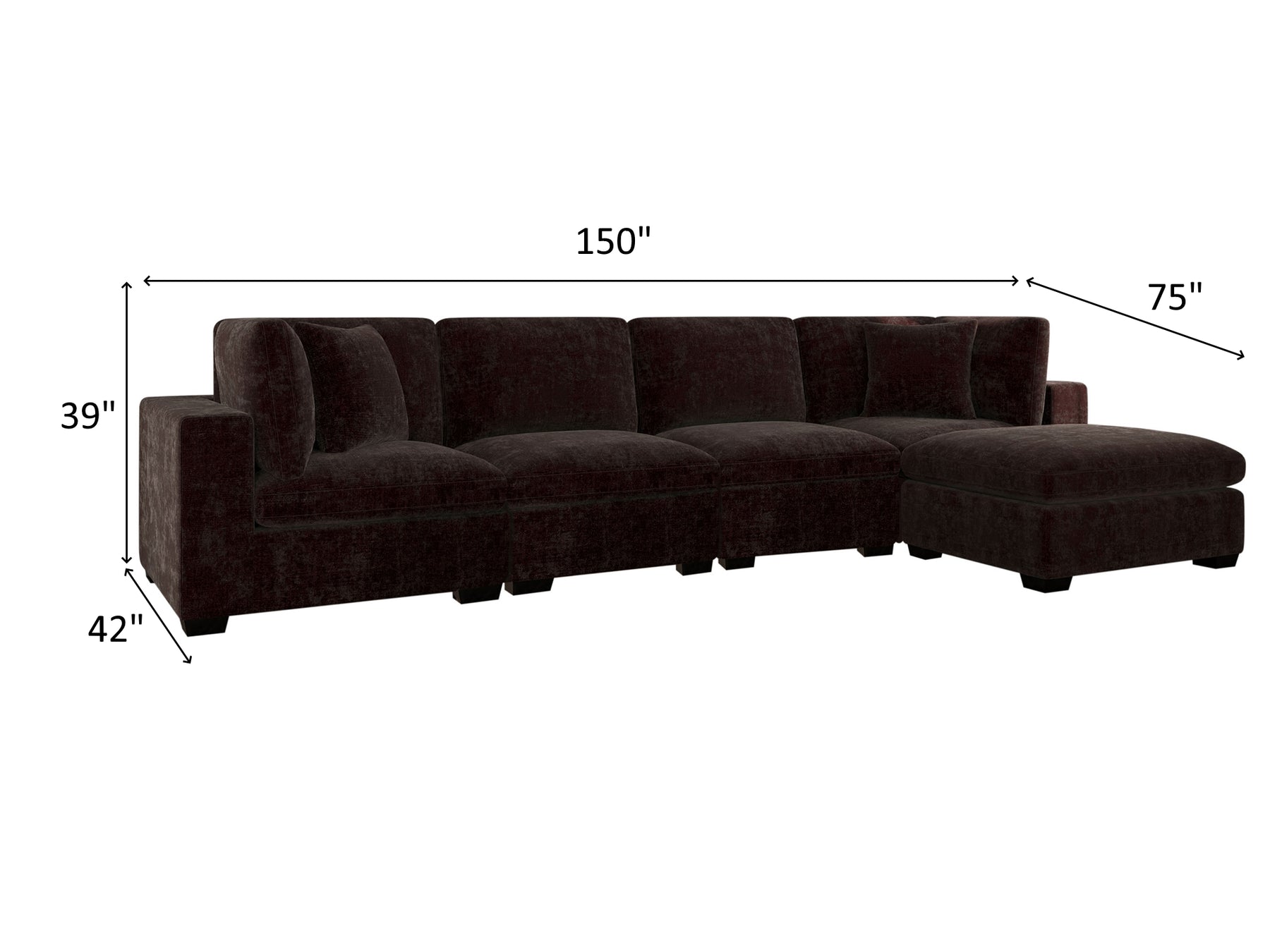 5 Piece Sectional Overall Dimensions 39" H x 150" / 75" W x 42" D
