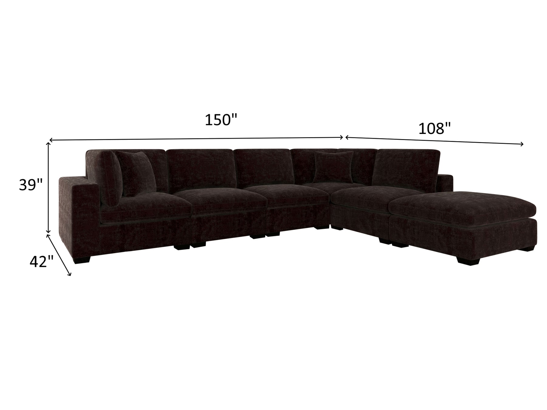 6 Piece Sectional Overall Dimensions 39" H x 150" / 108" W x 42" D