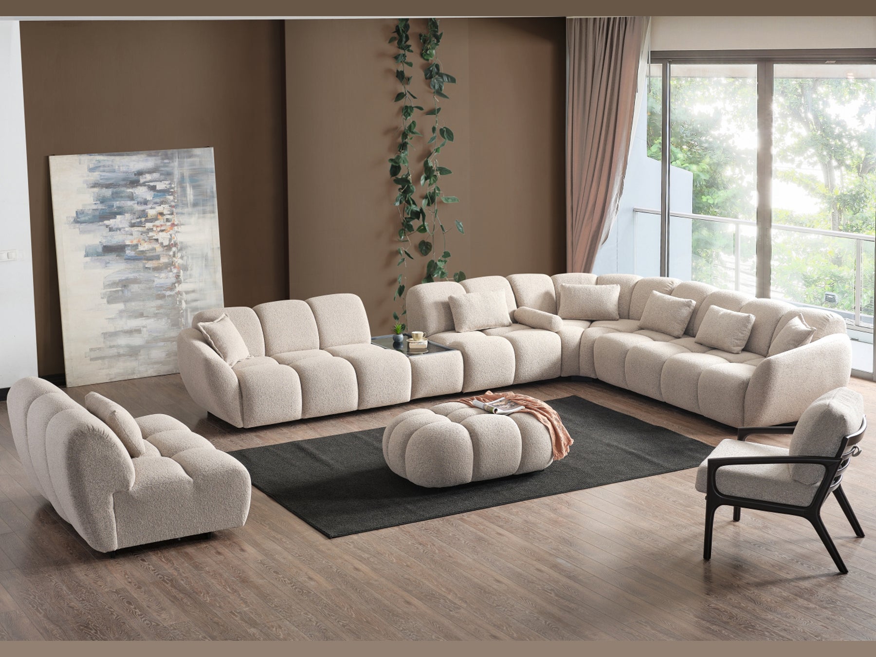 7 Piece Sectional Overall Dimensions 30" H x 214.5" / 132" / 115" W x 41" D