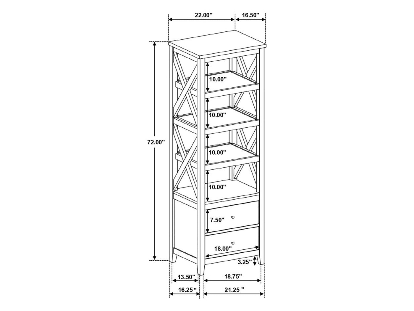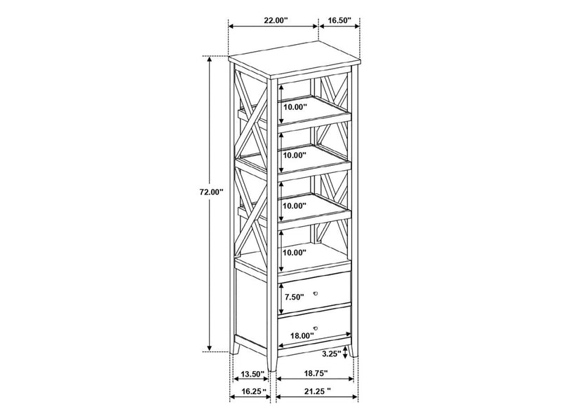 Media Tower Overall Dimensions 72" H x 22" W x 16.5" D