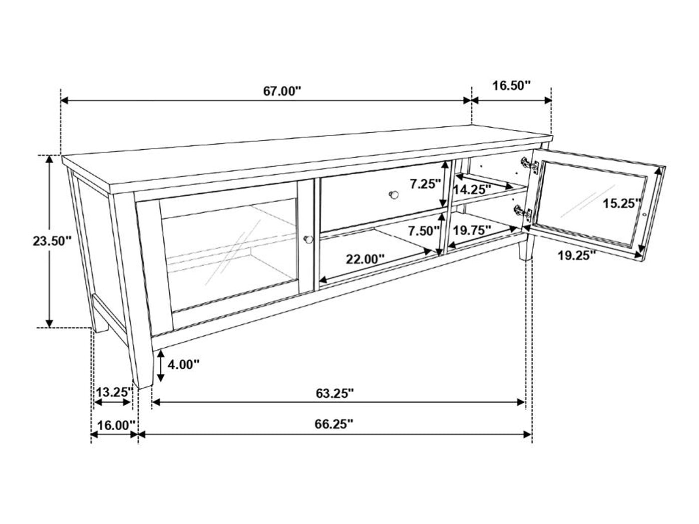 TV Stand Overall Dimensions 23.5" H x 67" W x 16.5" D