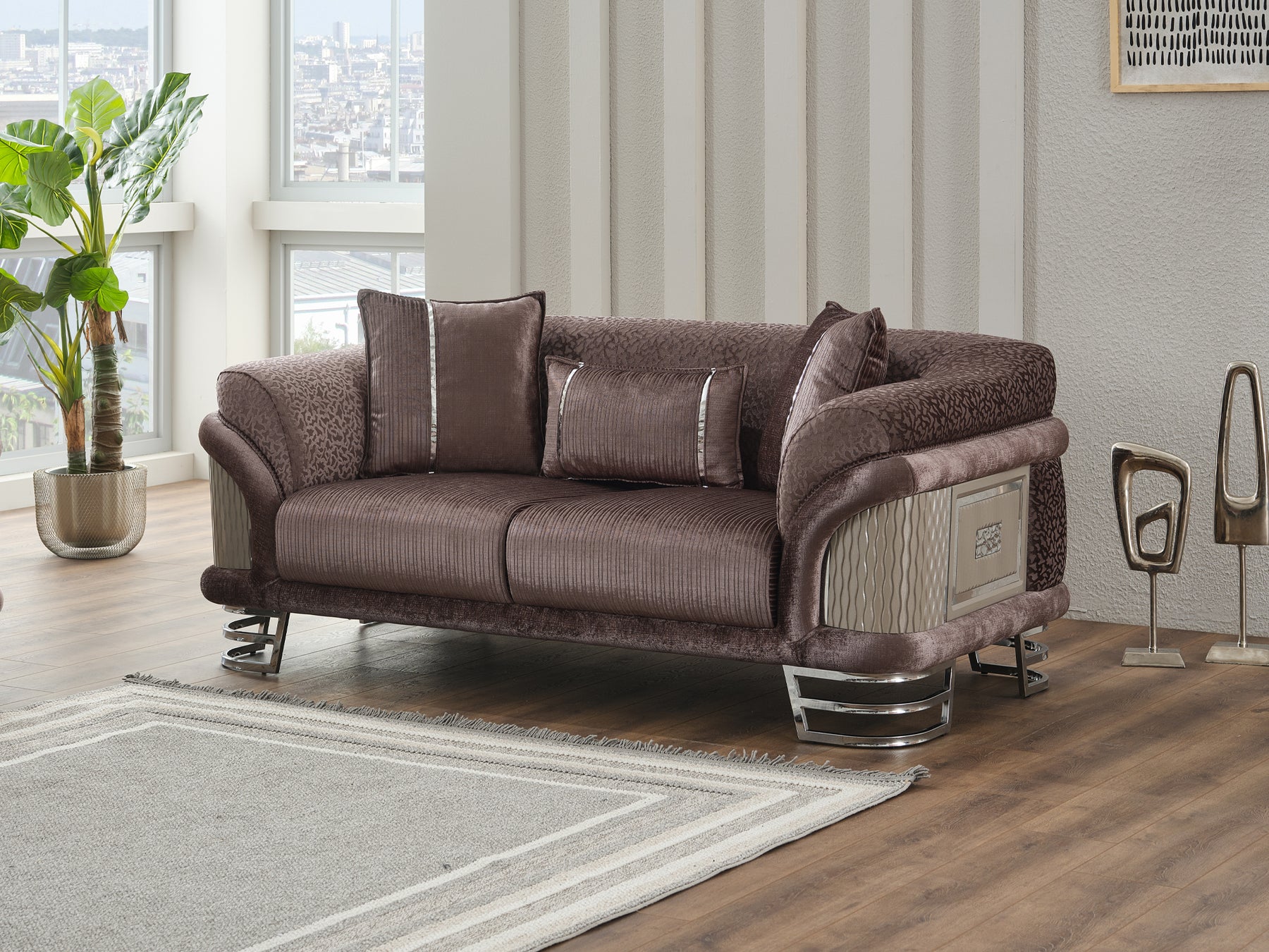 Versace Silver 74.8" Wide Loveseat