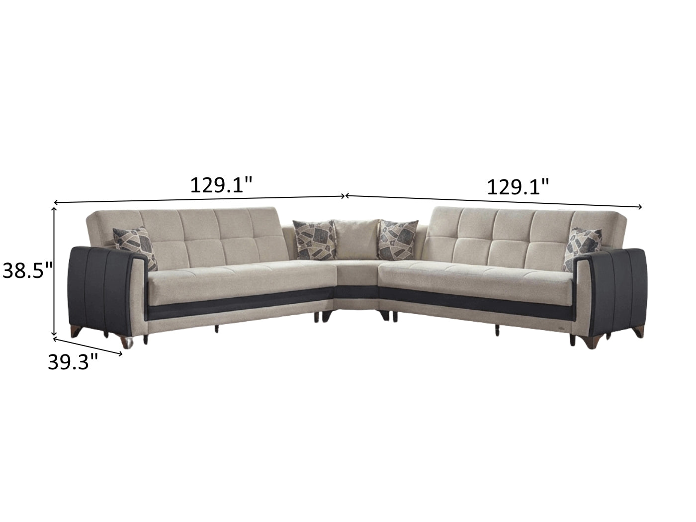 Sofa - Wedge - Sofa Overall Dimensions 38.5" H x 129.1" / 129.1" W x 39.3" D