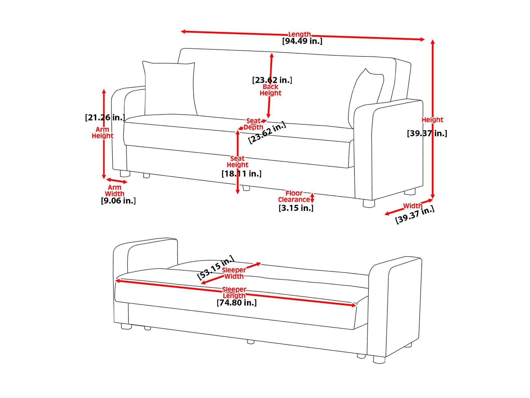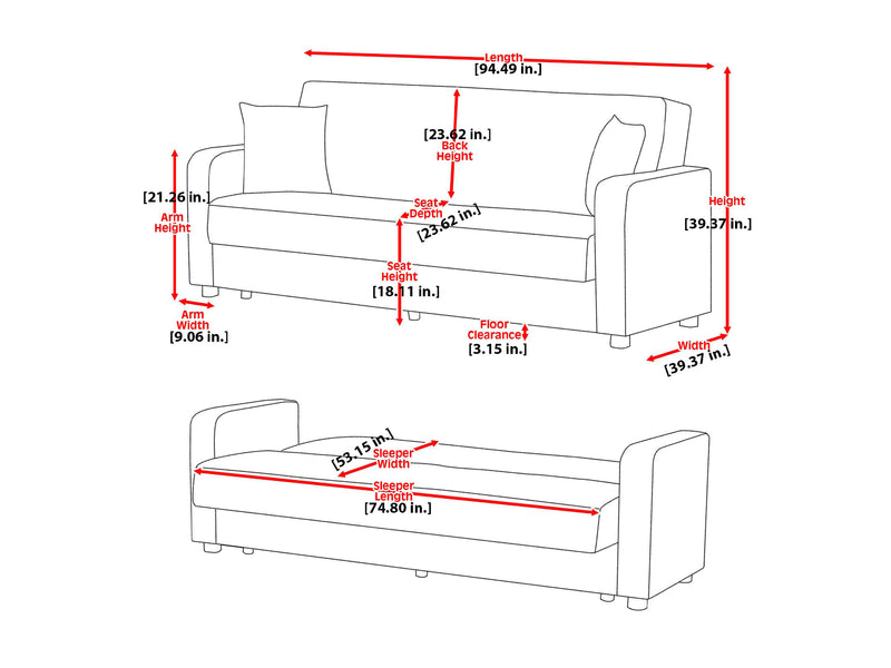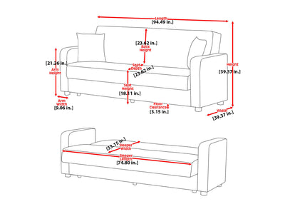 Overall Dimensions 39.4" H x 94.5" W x 39.4" D