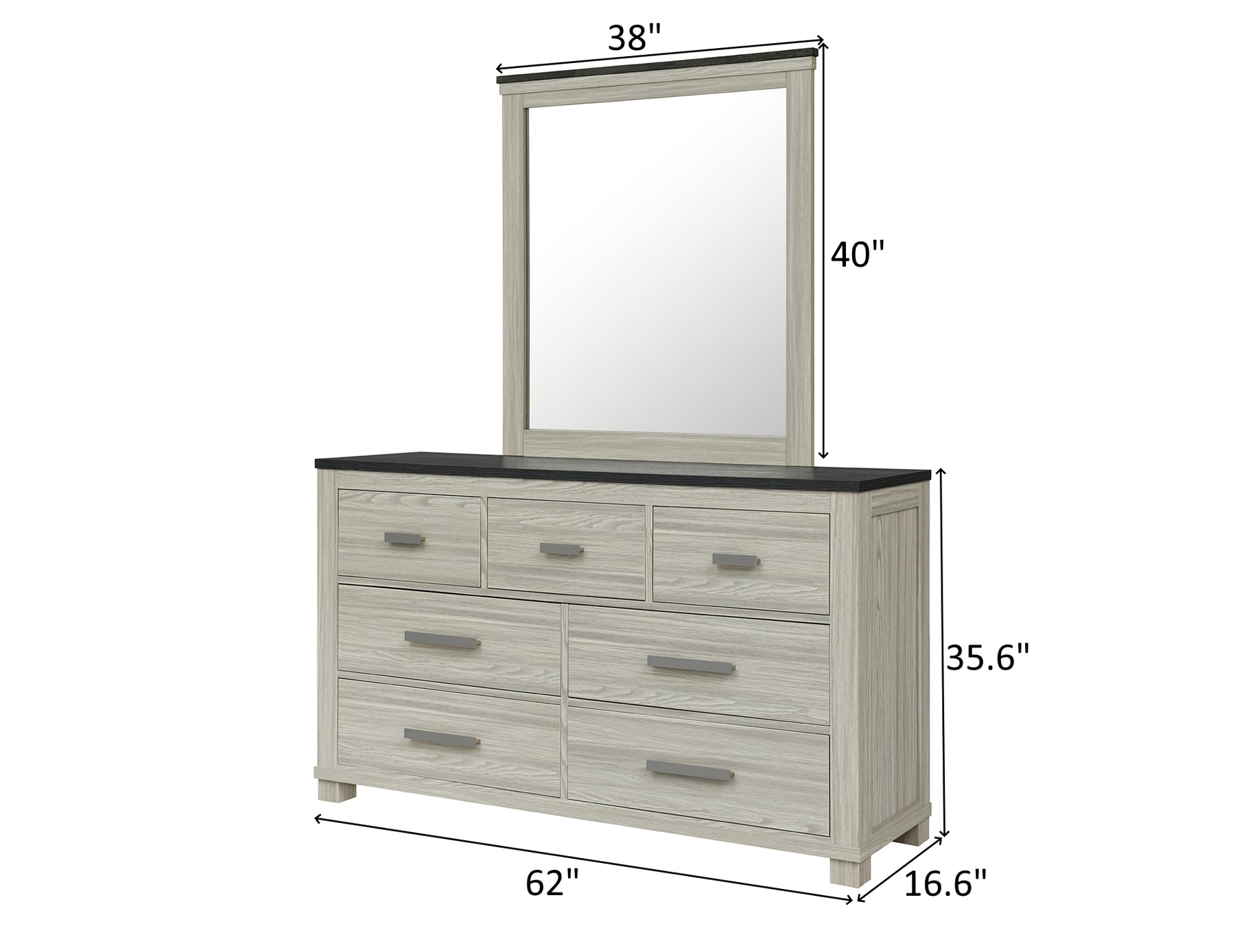 Dresser Overall Dimensions 36.5" H x 62" W x 16.6" D