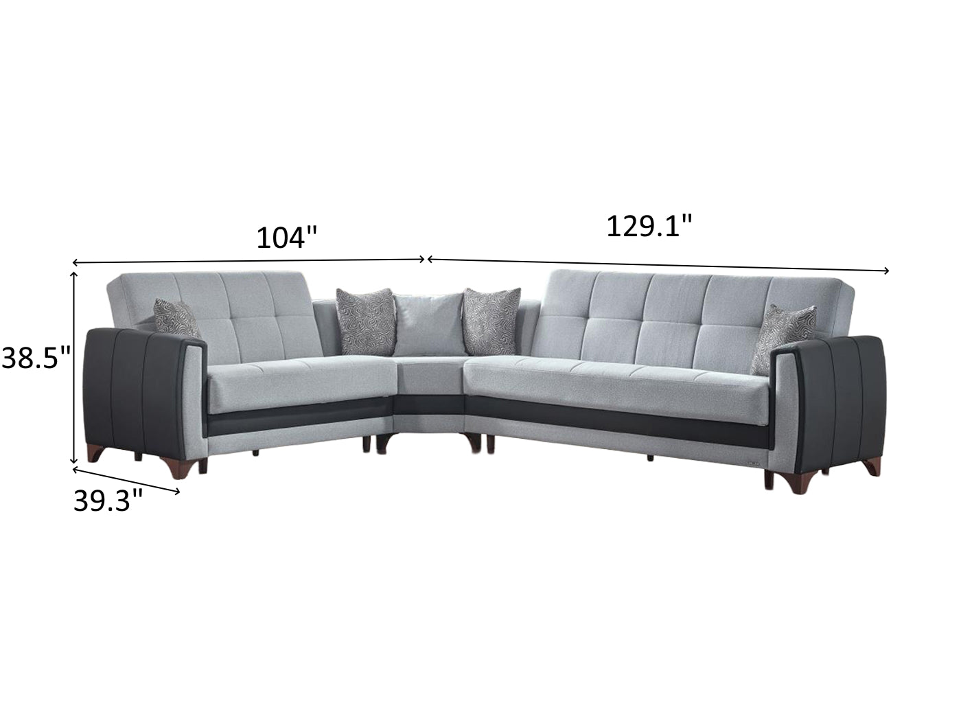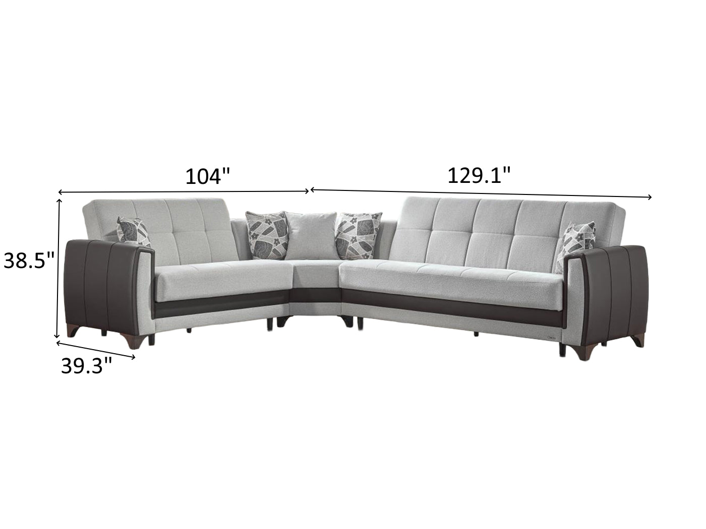 Sofa - Wedge - Loveseat Overall Dimensions 38.5" H x 129.1" / 104" W x 39.3" D
