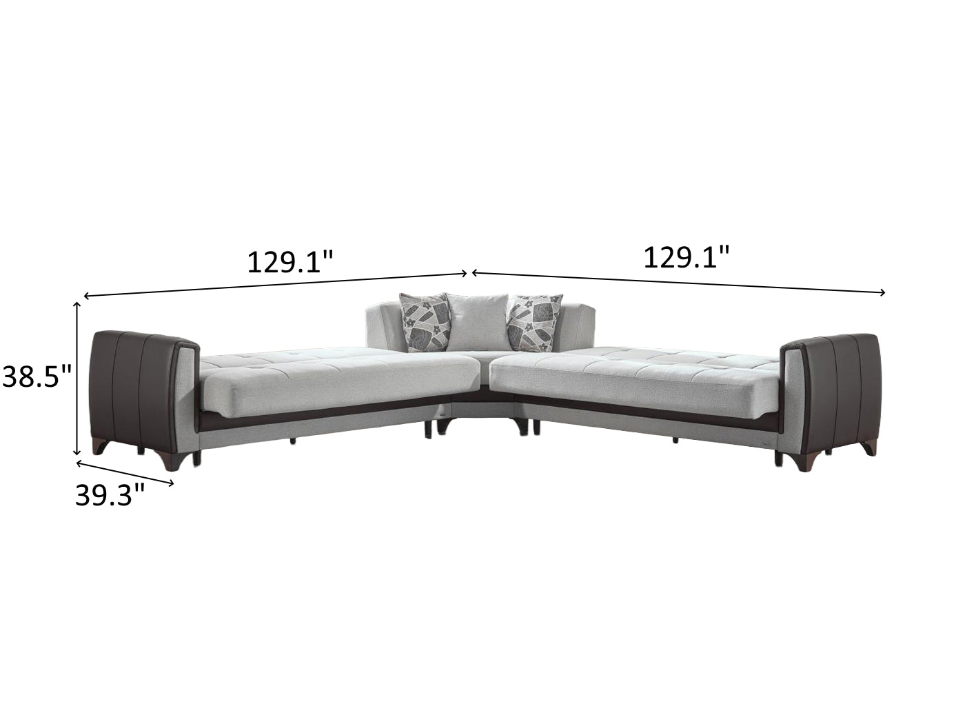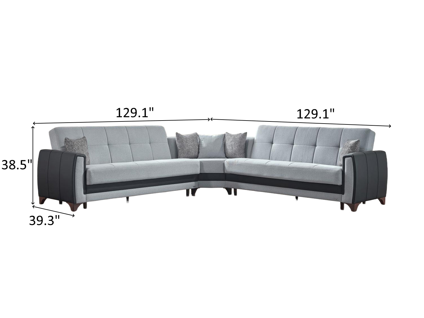 Sofa - Wedge - Sofa Overall Dimensions 38.5" H x 129.1" / 129.1" W x 39.3" D