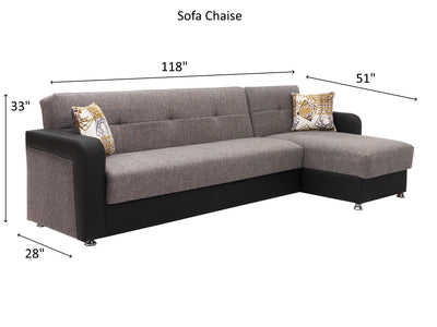 Sofa & Chaise Sectional Overall Dimensions 33" H x 118" W x 28" / 51" D
