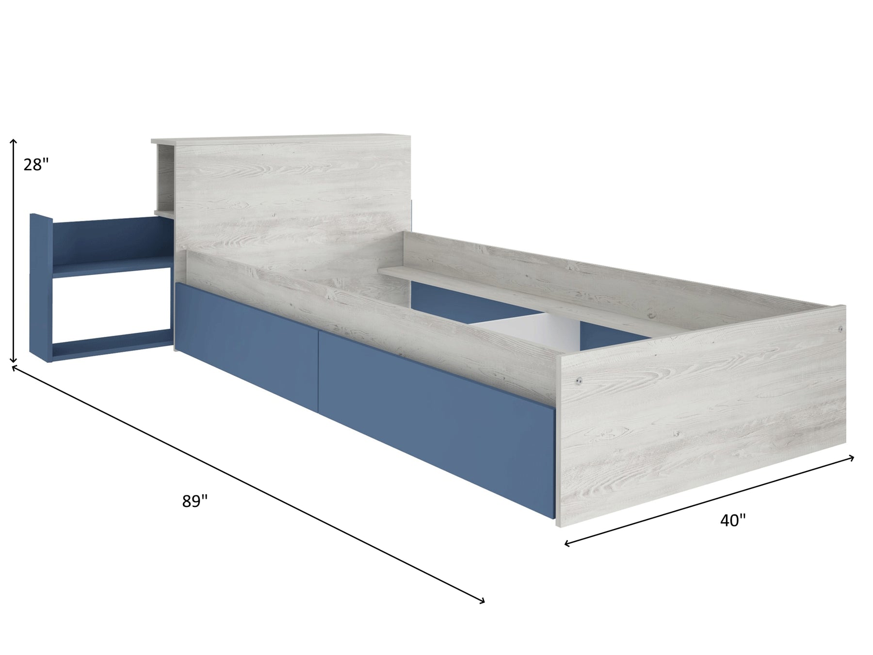 Twin Bed Overall Dimensions 28" H x 89" W x 40" D