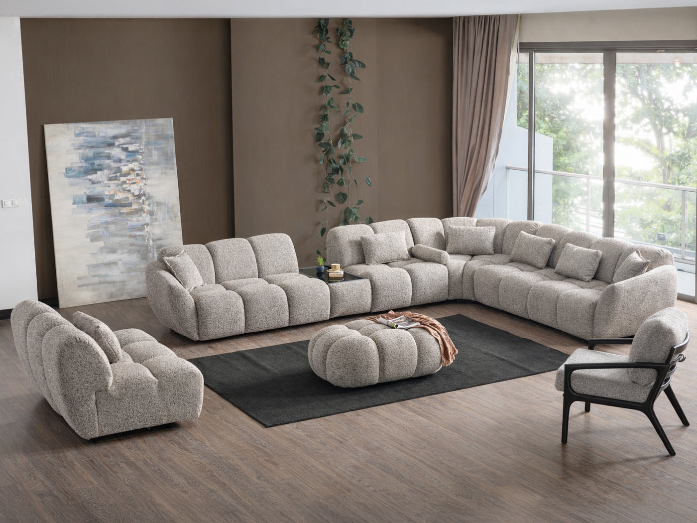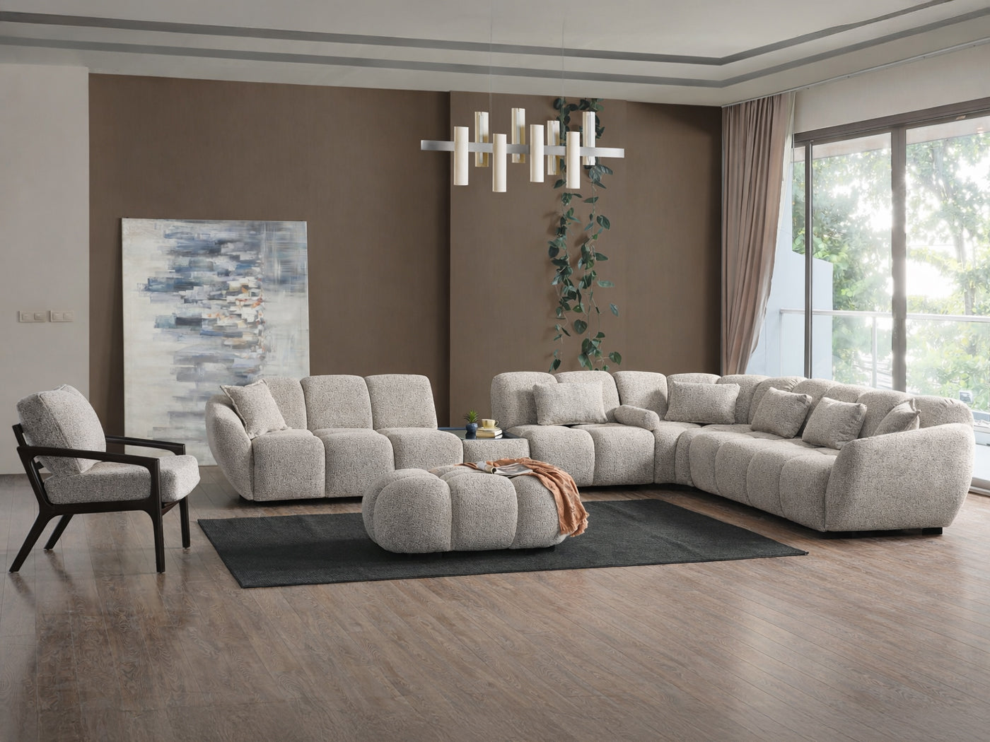 7 Piece Sectional Overall Dimensions 30" H x 214.5" / 132" / 115" W x 41" D