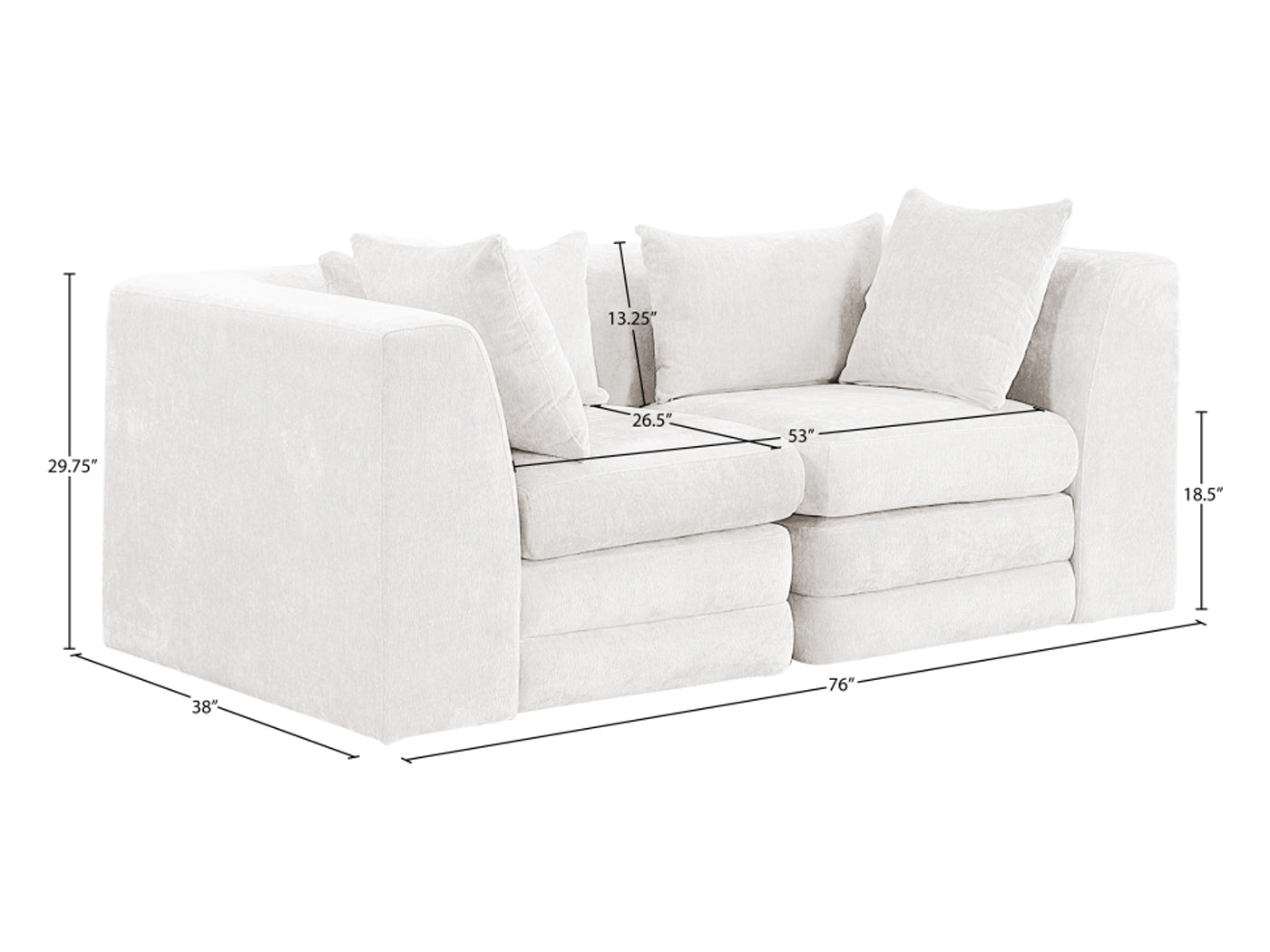Overall Dimensions 29.7" H x 76" W x 38" D