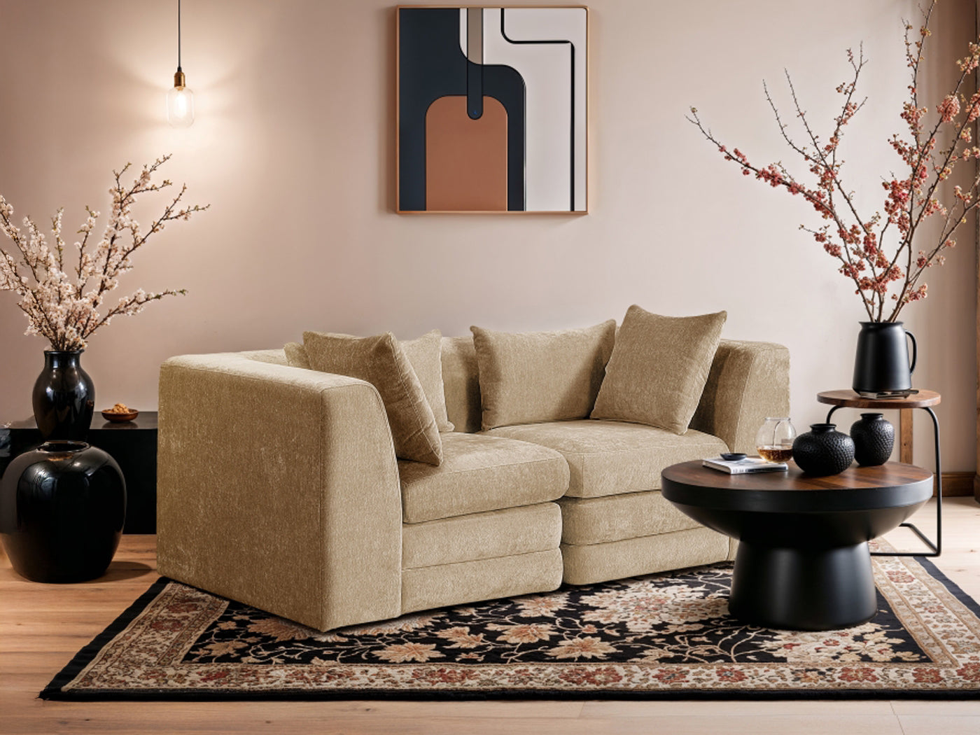 - Soft Beige Polyester Chenille Fabric