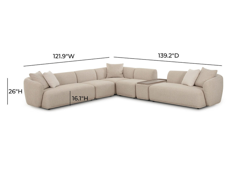 Overall Dimensions 26" H x 139.2" / 121.9" W x 36.2" D